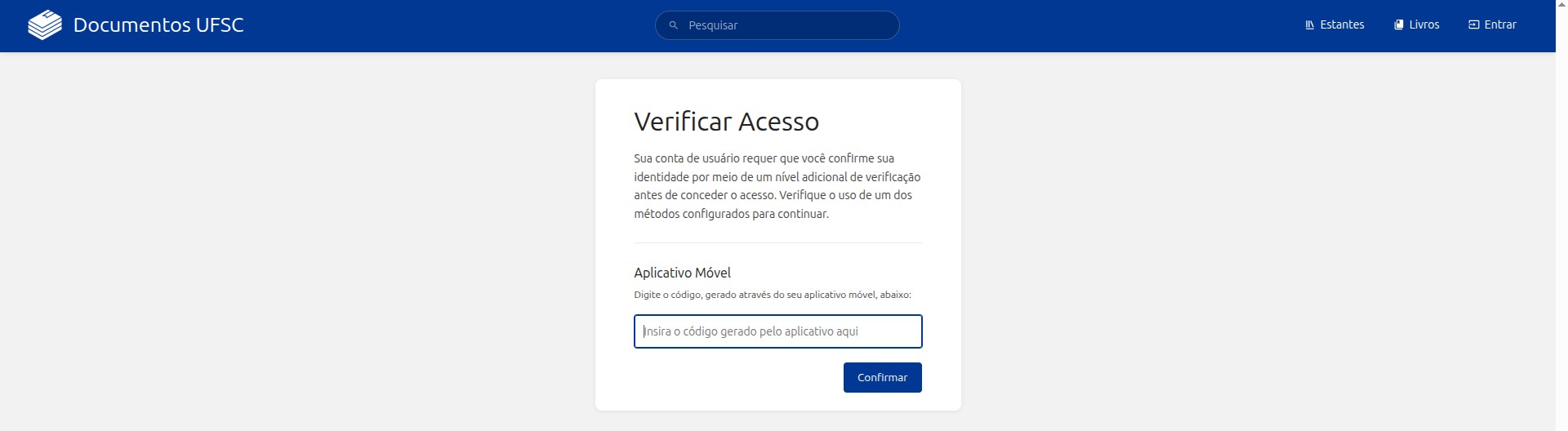 - Ao tentar entrar no sistema, depois de digitar seu usuário e senha, será solicitado um código de 6 dígitos.